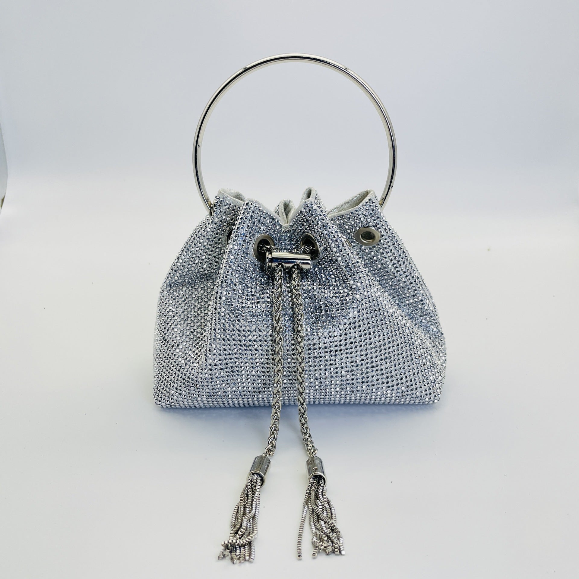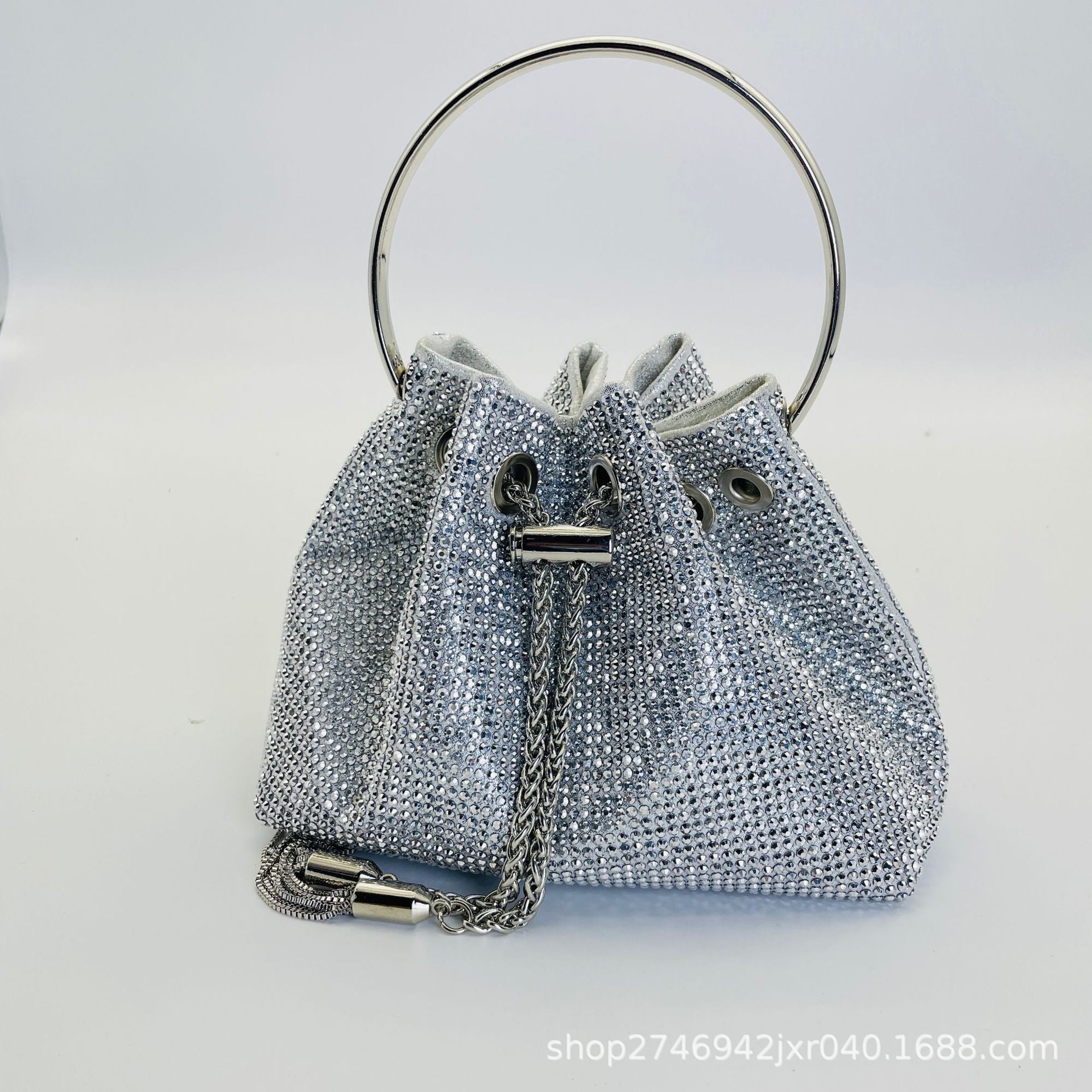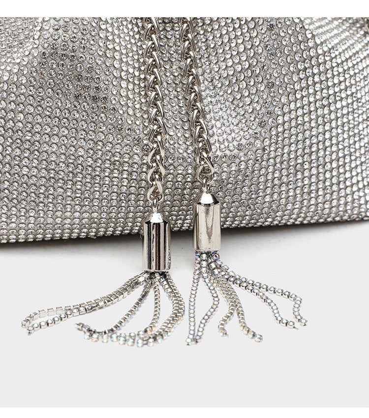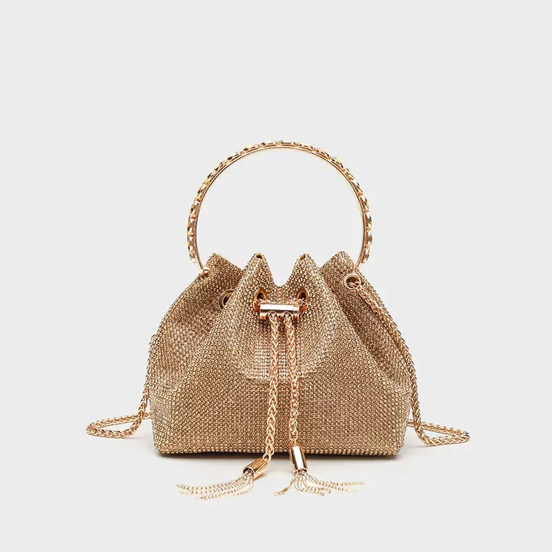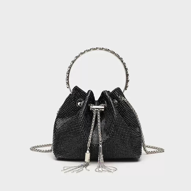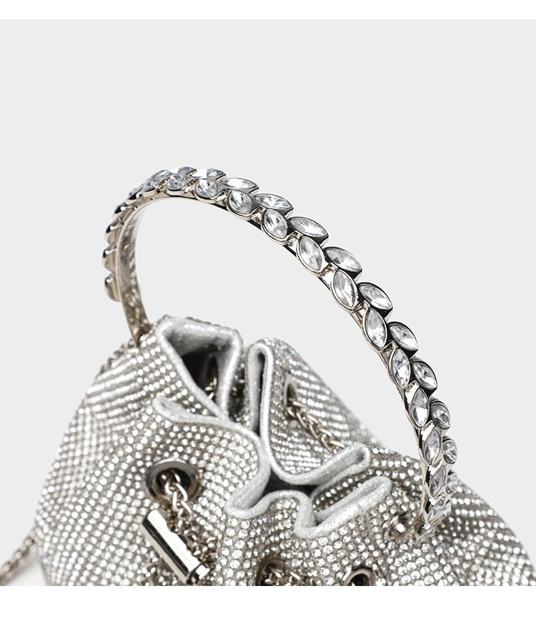 ▫️ Hardware: Crystal‑encrusted drawstring, polished metal accents