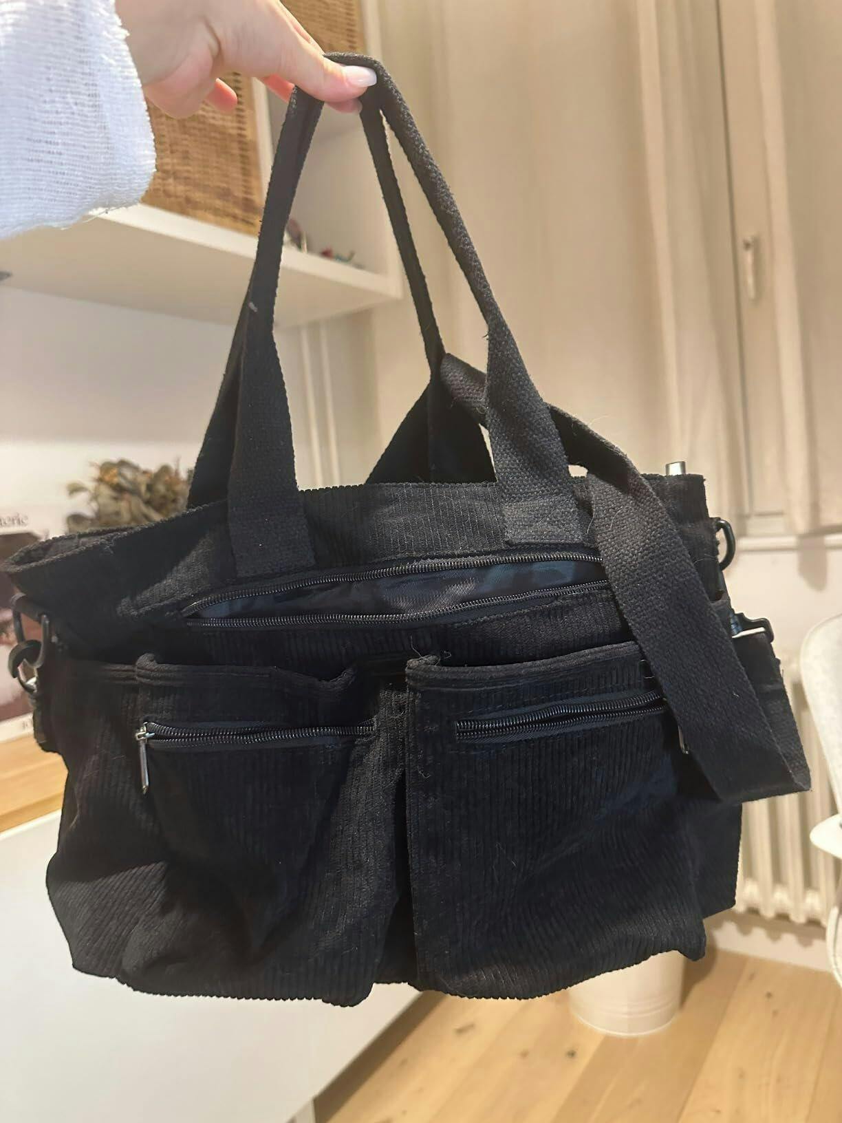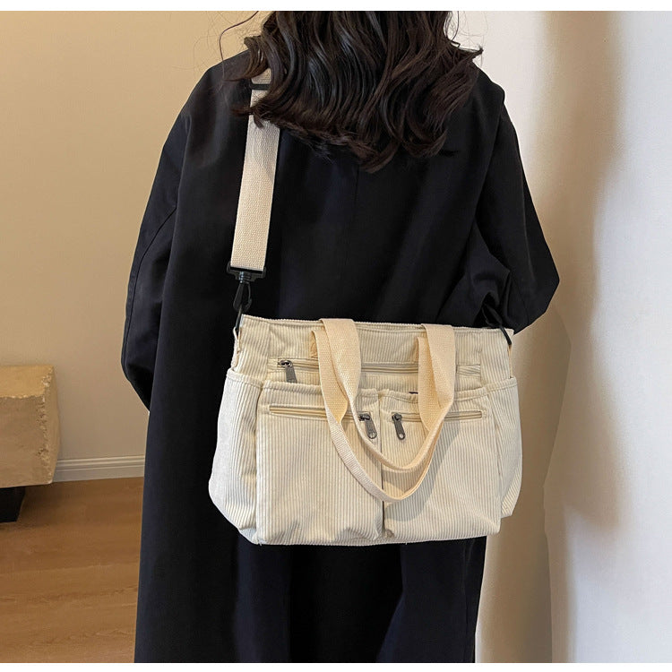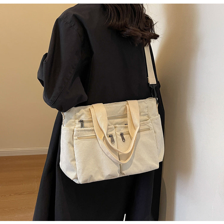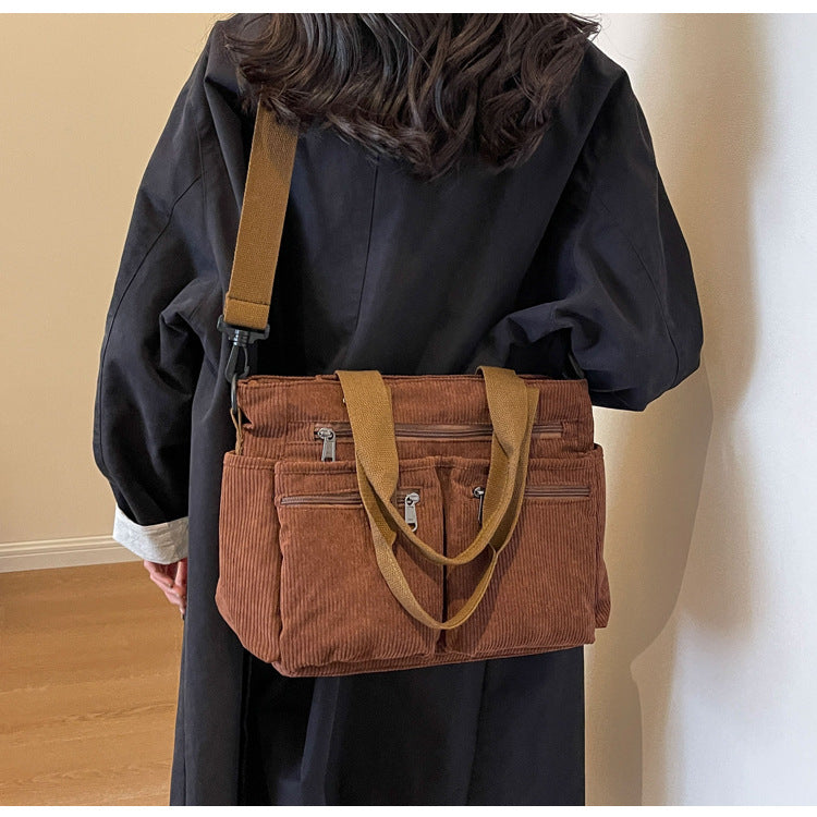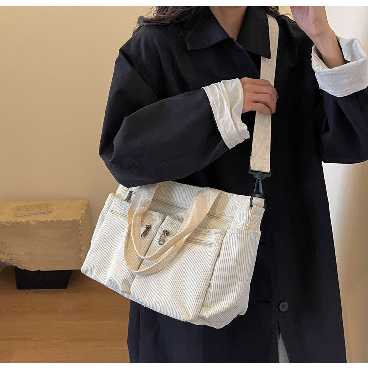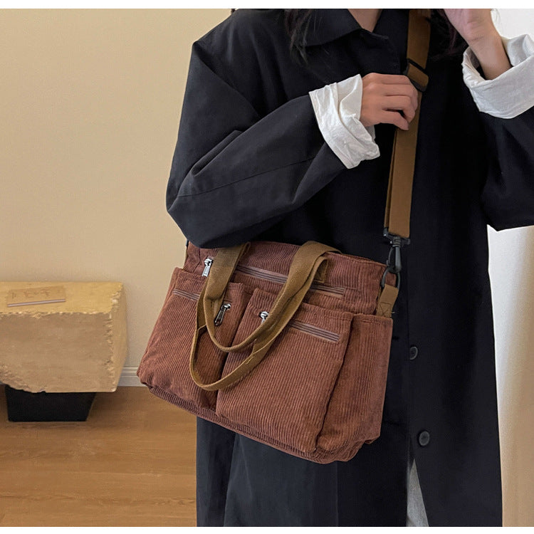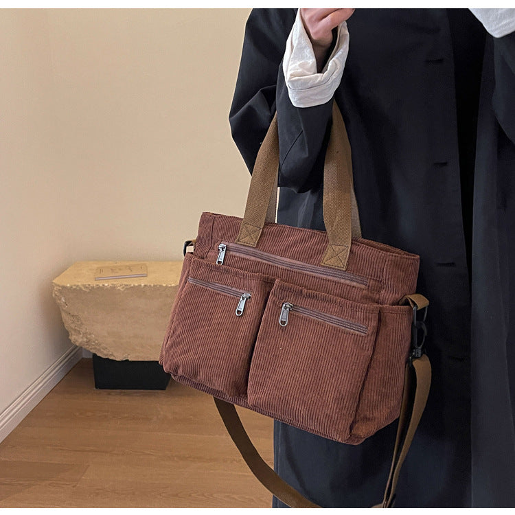 This soft yet structured corduroy tote is perfect for those who love a blend of retro aesthetics and modern versatility. Whether for casual outings or daily commutes, its spacious design and practical compartments make it a must-have accessory for the season!