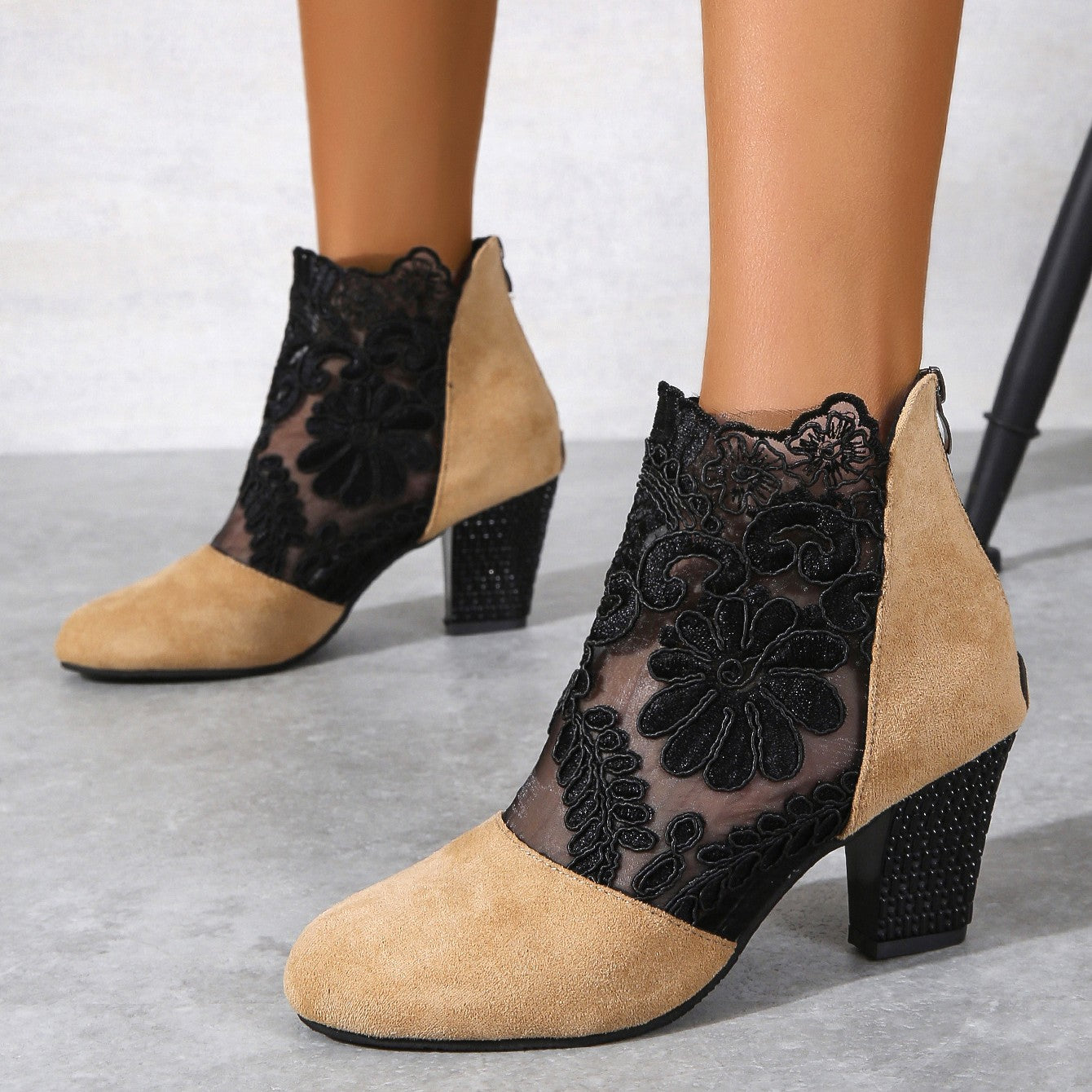 Imagine walking on starlight. Our 3D spacer mesh – laser-cut into floral filigree – floats like gossamer against your skin, while the sculpted stiletto block heel anchors you in sublime confidence.