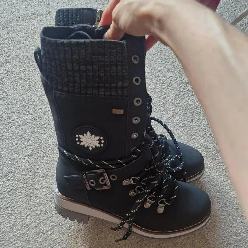 Step into winter with confidence in the Bootara Women's Nordic Knit Combat Boot. Designed for those who refuse to compromise between fashion and function, this boot combines rugged outdoor readiness with unmistakable Nordic charm. The folk-inspired knit cuff and contrasting leather accents create a unique, eye-catching look, while the insulated thermal cotton lining and secure lace-up design ensure your feet stay warm and dry all season long.